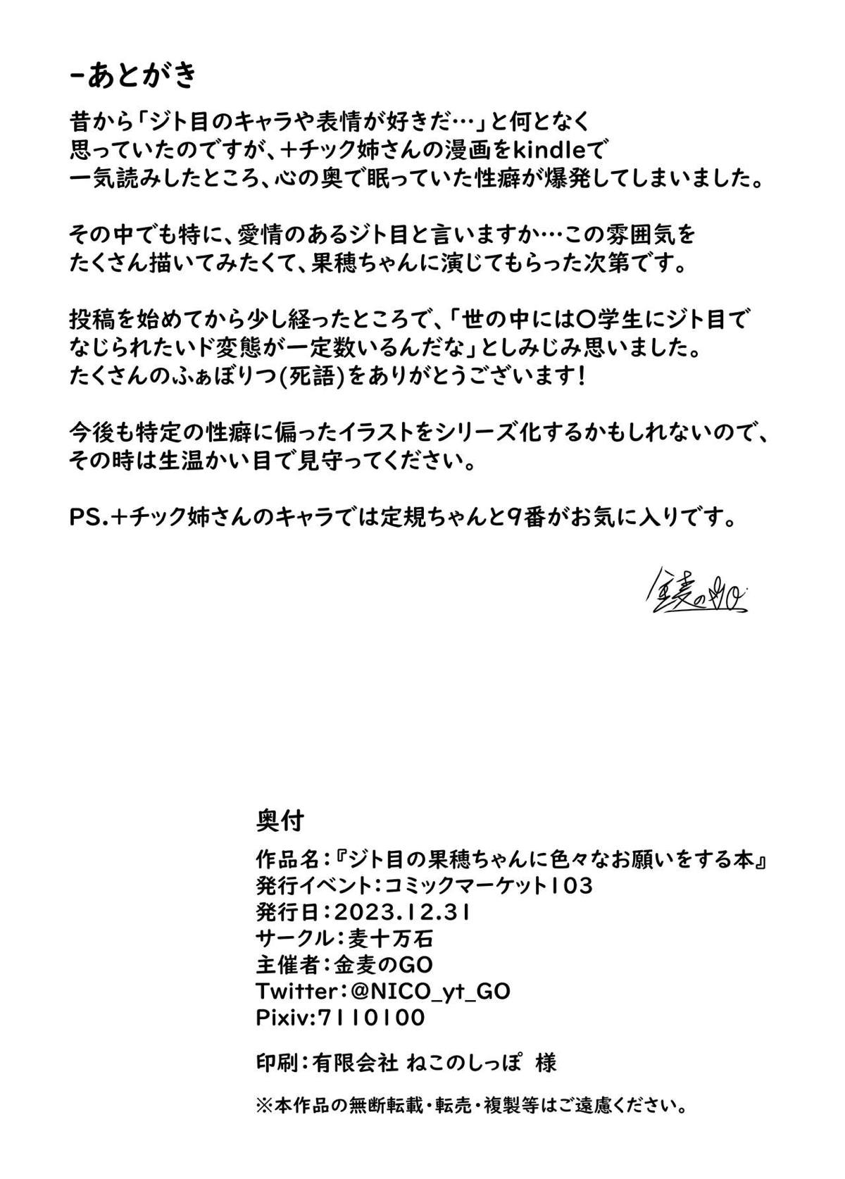 ジト目の果穂ちゃんに色々なお願いをする本 07.21 05:00 アイドルマスターシャイニーカラーズ 小宮果穂 麦十万石 2023年冬コミ(C103)おもちゃかわいいトロ顔フェラフルカラーむちむち中出し制服巨乳水着汗だく騎乗位